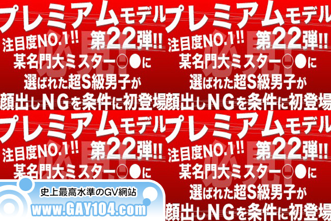 プレミアムモデル第22弾!!注目度NO.1!!超S級☆完全パーフェクト男子が顔出しNGを条件に初登場!!端正な顔立ちに鍛え抜かれた身体・・さらにデカマラ、極上のエロさは必見!!なんとこの彼、某大学のミスターにまで選ばれたという、イケメンな彼!そんな彼をスタッフが責めまくっちゃいました!インタビュー身体チェックと順調にスタッフが責め始めると即アソコはビンビンに・・と、思いきや「あと何分くらいですか?!」と撮影中断の危機に…!!!何とかその場の空気を和ませスタッフ必死の発射を目指してシゴキ上げると嫌がりながらも感じまくる場面も…最後はあまりの気持ち良さに溜まったザーメンを屈辱の濃厚発射!!撮影後の落胆ぶりはさすがノンケです☆スタッフ一押し…必見です☆